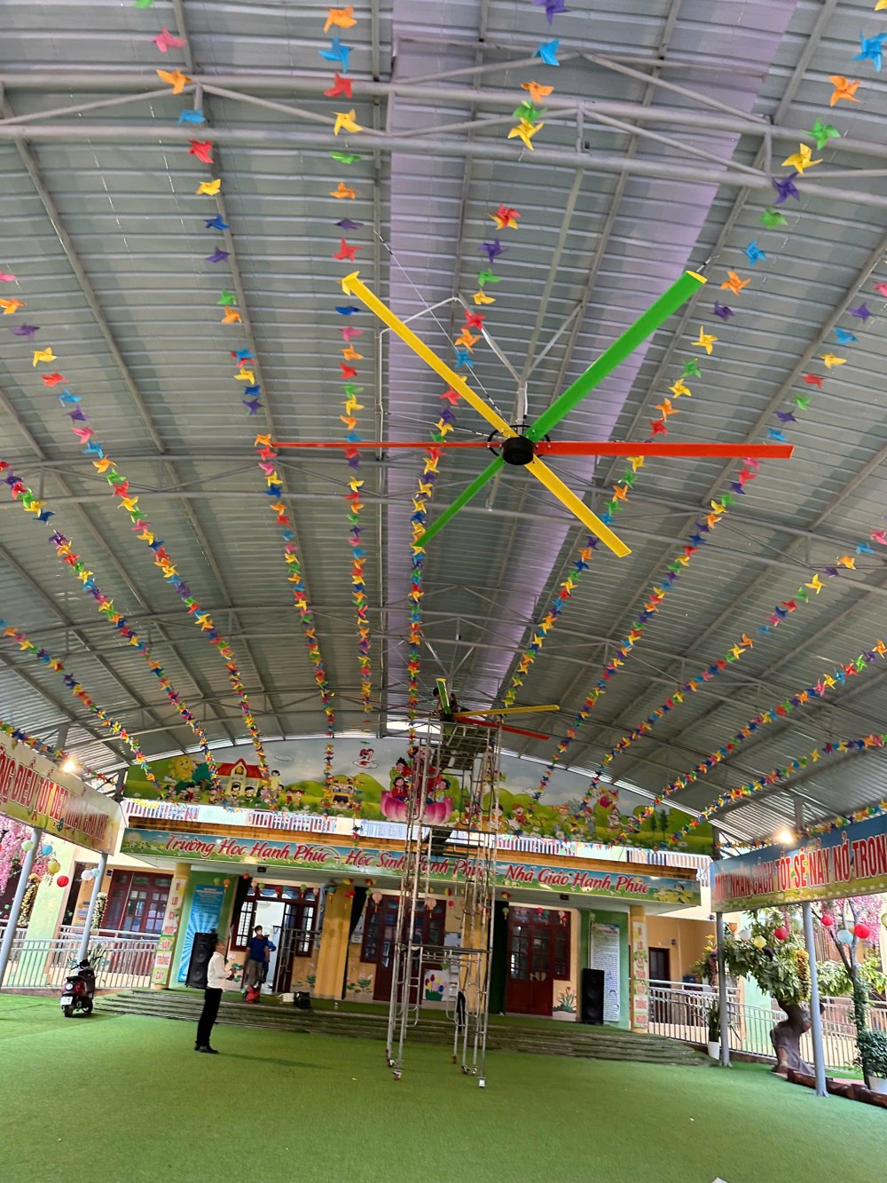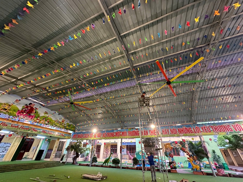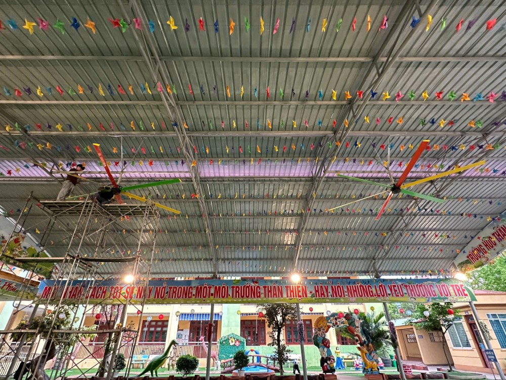 Hành trình mang “làn gió lớn” đến những không gian ý nghĩa tiếp tục được viết nên tại Trường Mầm non Phường Hồ, nơi vừa hoàn tất lắp đặt quạt trần cánh lớn ĐMA – giải pháp làm mát hiện đại, an toàn và bền vững