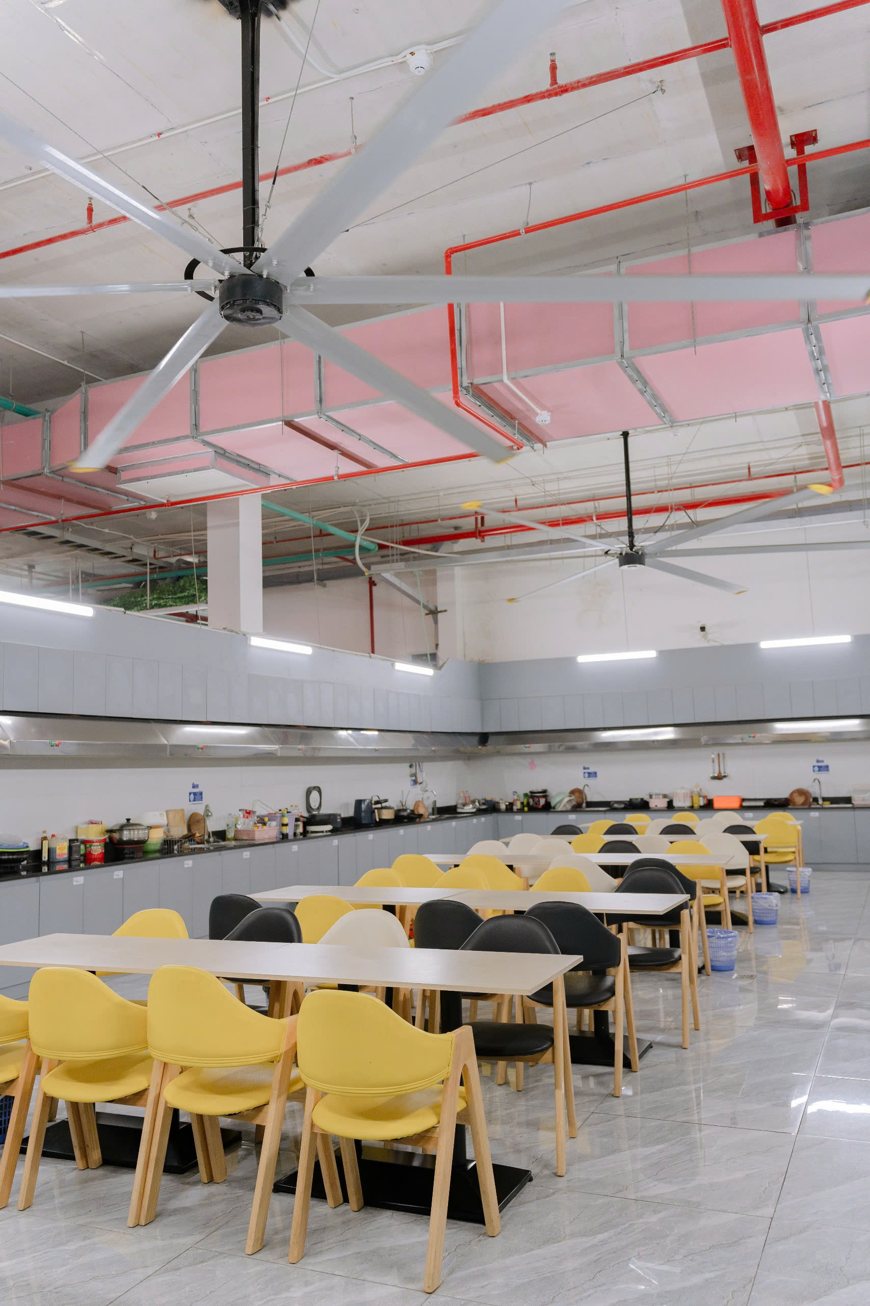 🍽️ Nhà ăn, khu bếp công nghiệp: không khí lưu thông tốt, giảm ngột ngạt và mùi.