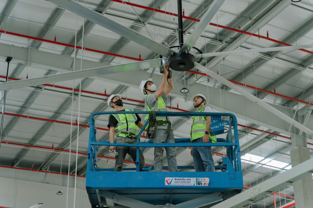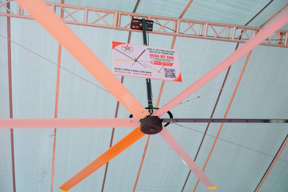 Với đường kính sải cánh 6,3 mét, quạt tạo ra luồng gió lưu thông mạnh mẽ, bao phủ diện tích rộng lên đến 1.000 m², giúp giảm nhiệt độ trung bình 2-5°C, cải thiện môi trường làm việc mát mẻ, thông thoáng và tiết kiệm năng lượng.