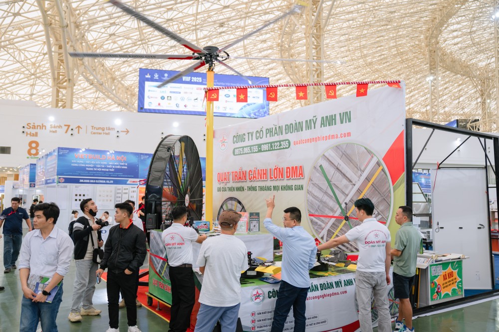 Từ ngày 12 đến 15/11/2025, Công ty Cổ phần Đoàn Mỹ Anh VN đã tham gia Triển lãm Công nghiệp tại Trung tâm Triển lãm Quốc gia – Đông Anh, Hà Nội. Sự kiện là cơ hội để chúng tôi giới thiệu các mẫu quạt trần cánh lớn ĐMA – giải pháp làm mát hiệu quả dành cho nhà xưởng, nhà ăn, trung tâm thương mại và các không gian công nghiệp quy mô lớn.